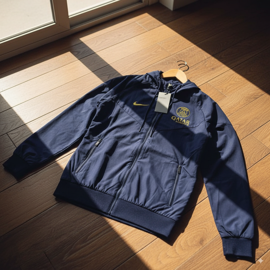 أظهر ولاءك لناديك المفضل مع جاكيت باريس سان جيرمان الأزرق الداكن، بتصميم أنيق مستوحى من روح الفريق الباريسي. مصنوع من خامات عالية الجودة تمنحك راحة مثالية ومتعة في الارتداء، سواء في التمارين الرياضية أو في إطلالتك اليومية.